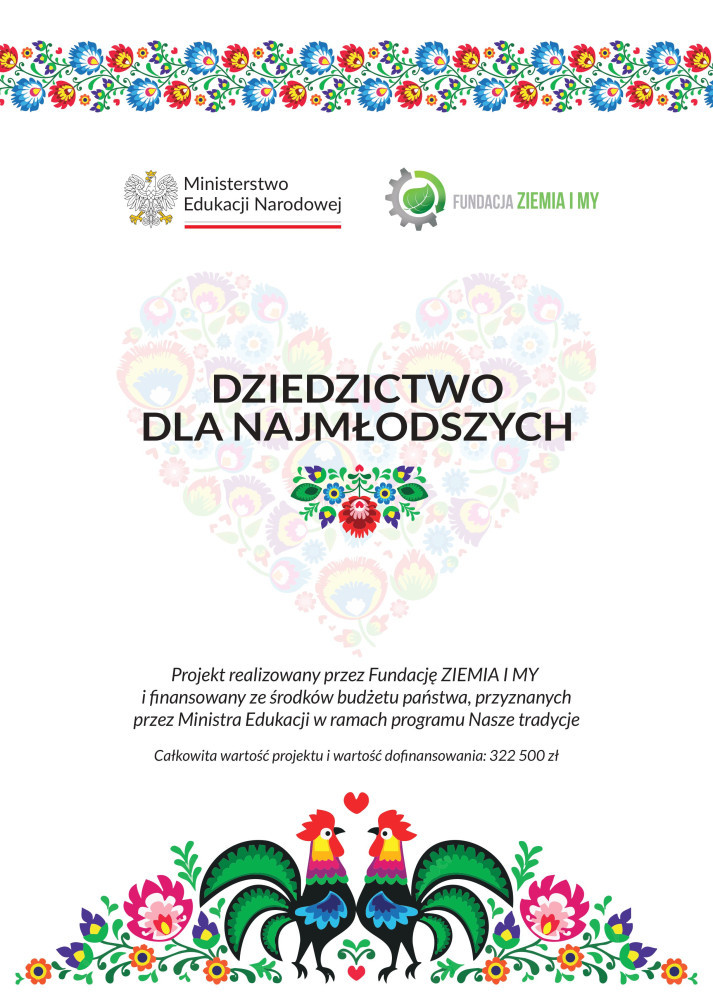 Nasze Przedszkole z ogromną radością uczestniczyło w projekcie edukacyjnym pn.: DZIEDZICTWO DLA NAJMODSZYCH, realizowanym przez Fundację ZIEMIA I MY, finansowany ze środków budżetu państwa, przyznanych przez Ministra Edukacji w ramach programu NASZE TRADYCJE który dostarczył dzieciom wielu niezapomnianych przeżyć i wartościowych doświadczeń.